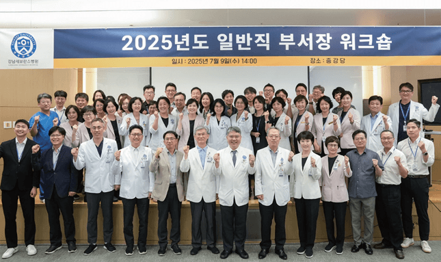 우리 병원은 7월 9일 중강당에서 일반직 부서장 워크숍을 개최했다. 이날 워크숍에는 구성욱 병원장과 이영목 진료부원장, 임재열 연구부원장, 김영석 기획관리실장, 주수용 사무국장, 안경아 간호국장, 일반직 부서장 80여 명이 참석했다.
