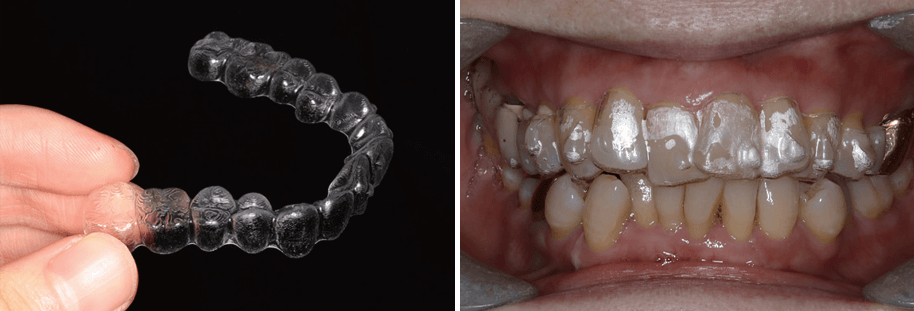 앞니에 충치치료나 크라운치료를 받은 분들은 먼저 주치의가 치아 상태를 한번 평가해보고 미백치료를 결정하는 것이 좋습니다. 앞니 충치를 치료하는 재료인 레진이나 크라운은 미백제를 도포해도 밝아지지 않습니다. 따라서 전체적으로 치아가 밝아지기를 원한다면 기존에 치료했던 부위의 색조와 조화되는지 등을 먼저 검사해보는 것이 좋습니다.