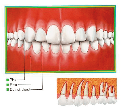 치주질환이 없는 건강한 잇몸은 출혈이 되지 않으며 골소실이 없다