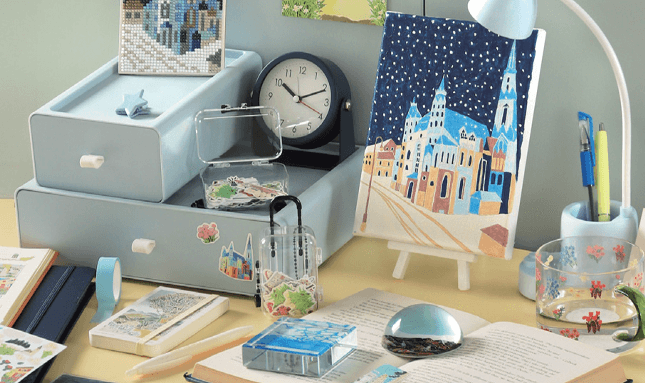 이 외에도 감성 문진, 풍경 편지 세트, 수첩 볼펜 세트, 모조지 스티커 등 여행의 감성을 일상 속 작은 예술로 풀어낸 다양한 제품을 만나볼 수 있다.