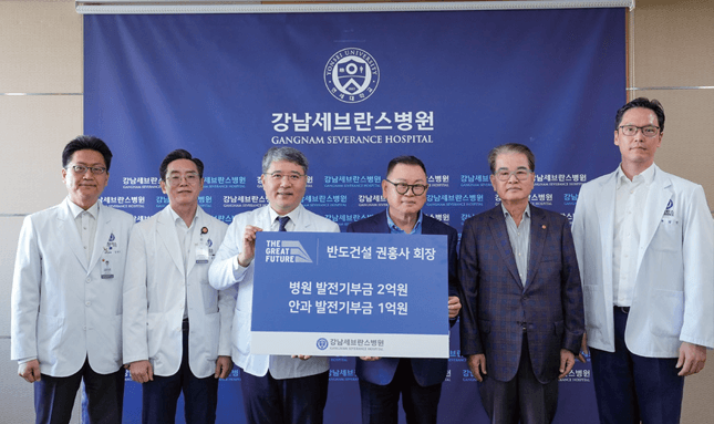 권홍사 ㈜반도건설 회장이 최근 병원 발전기부금 2억 원, 안과발전기부금 1억 원 등 3억 원을 후원했다. 전달식에는 권홍사 회장, 동생 권혁운 아이에스동서 회장과 구성욱 강남세브란스병원장, 김영석 기획관리실장, 윤영훈 발전기금사무국장, 김민 홍보실장 등이 참석했다.