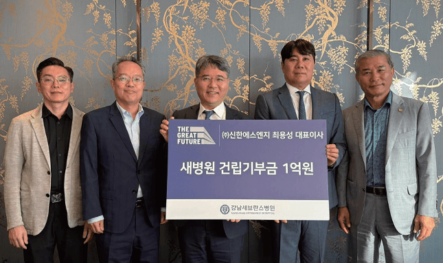 최용성 주식회사 신한에스엔지 대표이사가 최근 새병원 건립기부금 1억 원을 후원했다. 기부금 전달식에는 최용성 대표이사, 김희선 삼원중공업㈜ 회장과 구성욱 강남세브란스병원장, 이영목 진료부원장, 윤영훈 발전기금사무국장이 참석했다. 최용성 대표이사는 “강남세브란스병원이 환자를 위하는 모습을 보고 힘을 보태주고 싶어 기부를 시작했다. 새병원 건립에 도움이 되길 바라며, 의료 현장 일선에서 힘써주셔서 감사하다”고 전했다.