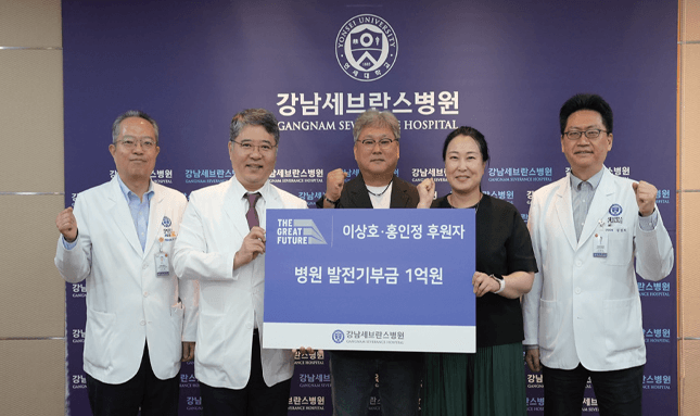 구성욱 병원장은 “우리 병원에 먼저 다가오셔서 기부의 문을 열어주셔서 감사하다. 환자들께 더 나은 진료를 제공할 수 있도록 노력하겠다”고 말했다. 한편, 홍인정 이사는 이번 기부를 통해 강남세브란스병원과 소중한 첫 인연을 맺었다.